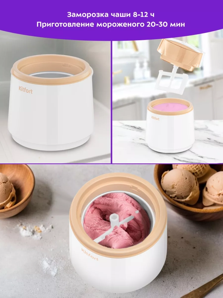 Полуавтоматическая мороженица Kitfort КТ-1837 поможет вам приготовить настоящее мороженое из натуральных продуктов, а также сорбет, джелато и замороженный йогурт. Мороженица снабжена системой смешивания и имеет чашу c хладагентом для охлаждения мороженого во время приготовления.