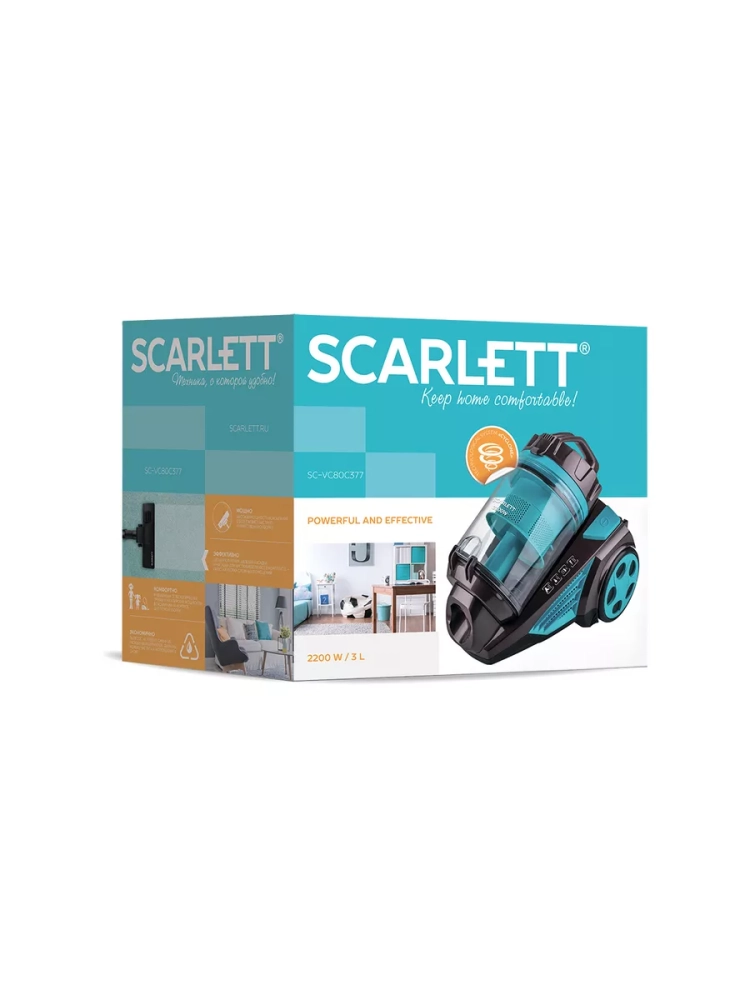Мощный циклонный пылесос Scarlett станет Вашим главным помощником в уборке даже самых грязных помещений любых размеров. Благодаря НЕРА фильтру и циклону внутри объемного пылесборника удерживается до 99% частичек пыли и мусора. Такая конструкция не требует замены на всем сроке службы и легко моется обычной водой. Контроль мощности на корпусе, телескопическая металлическая трубка, автоматическое сматывание 5-ти метрового шнура и 2 насадки в комплекте сделают уборку дома комфортной, быстрой и эффективной. Используйте универсальную щетку пол/ковер для любых напольных покрытий и насадку мебель/щель для труднодоступных мест. Теперь все углы в Вашем доме будут чистыми!