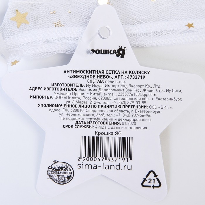 Москитная сетка для колясок Крошка Я "Звездное небо" отлично защитит малыша от насекомых, а также мелкого мусора, переносимого ветром. Размер 100х130 см.