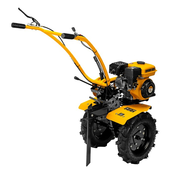 - Регулятор оборотов расположен на рукоятке управления перед оператором.