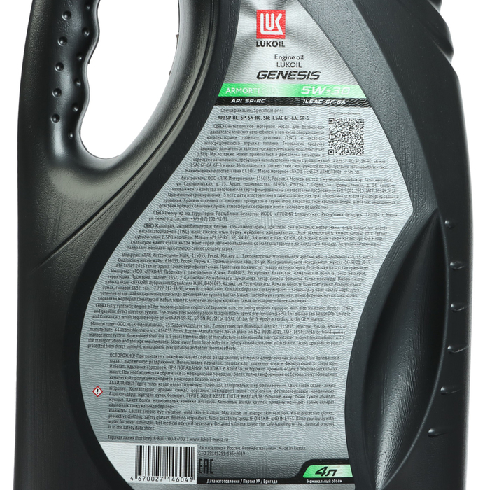 Моторное масло Лукойл Genesis Armortech JP 5W-30, API SN/RC, синтетическое, 4 л 3149902