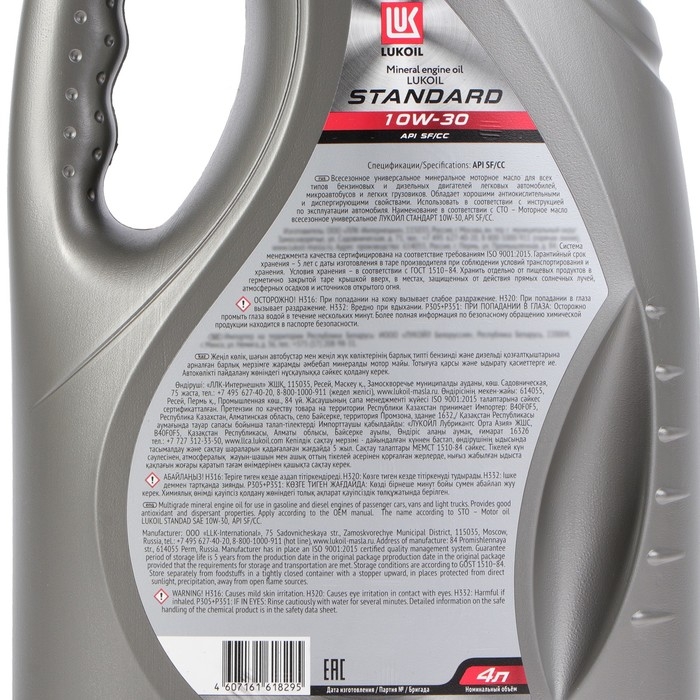 Моторное масло Лукойл Стандарт 10W-30, API SF/CC, минеральное, 4 л 19431