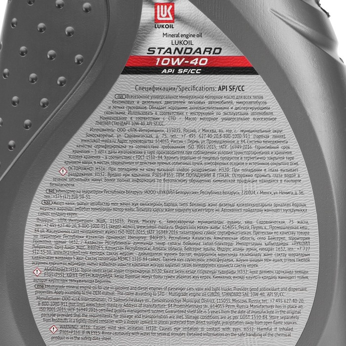 Моторное масло Лукойл Стандарт 10W-40, API SF/CC, минеральное, 1 л 19184