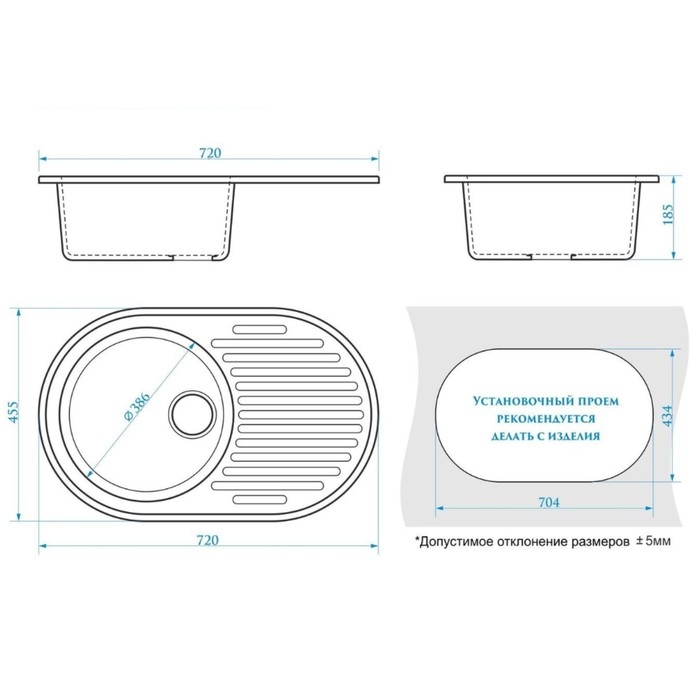 Поверхность изделия матовая, что очень практично в уходе. Мойка имеет высокую прочность и стойкость к перепадам температур.