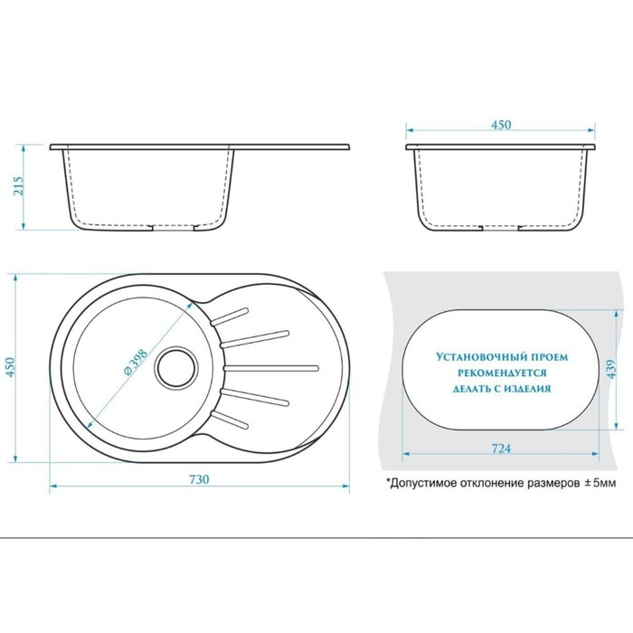 Поверхность изделия матовая, что очень практично в уходе. Мойка имеет высокую прочность и стойкость к перепадам температур.
