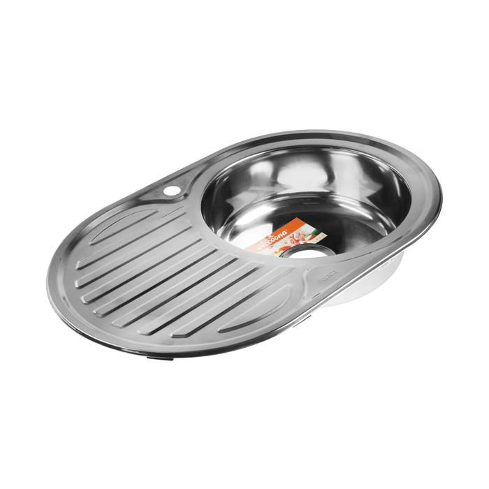 Мойка кухонная Accoona AB5077-R, врезная, правая, толщина 0.6 мм, 770х500х165 мм, глянец