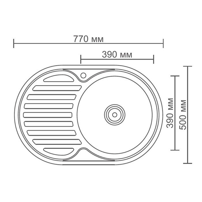 Мойка кухонная MIXLINE 528182, врезная, толщина 0.6 мм, 49х49х17 см, вып. 3 1/2", с сифоном