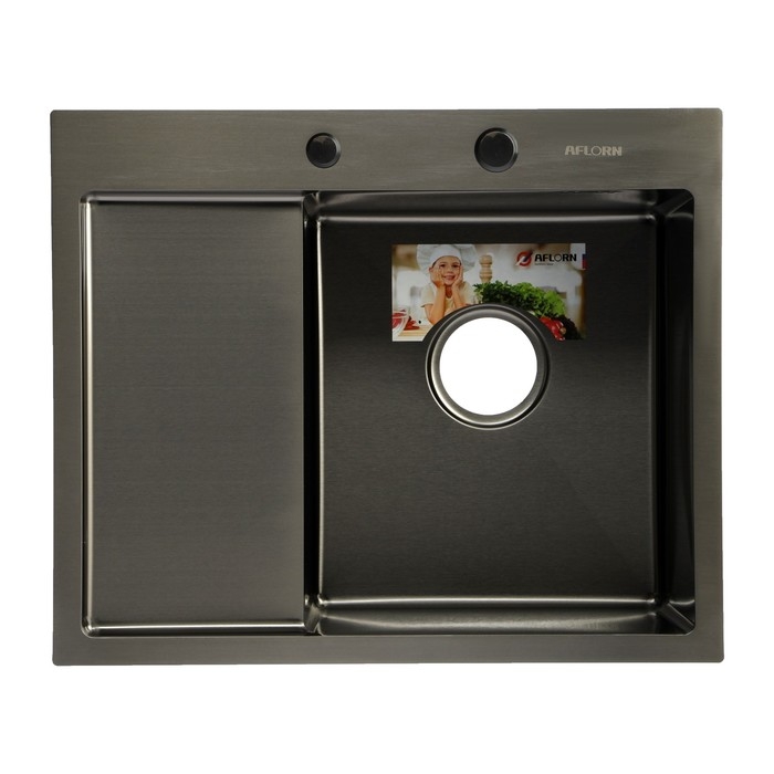 Мойка кухонная AFLORN AF95848F-R, врезная, правая, S=3 и 0,8 мм, 58х48х22 см, сифон, графит