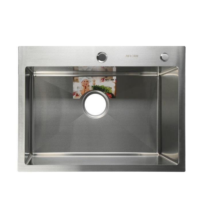 Мойка кухонная AFLORN AF96045, врезная, S=3,0 и 0,8 мм, 60х45х22 см, сифон, сатин