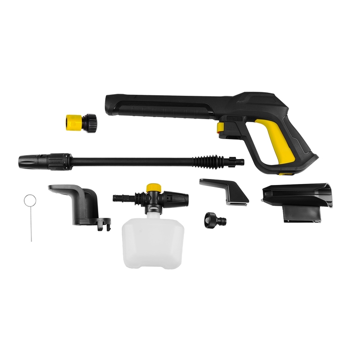 - Удобство использования: Регулируемая струя и пеногенератор для эффективной и быстрой очистки.