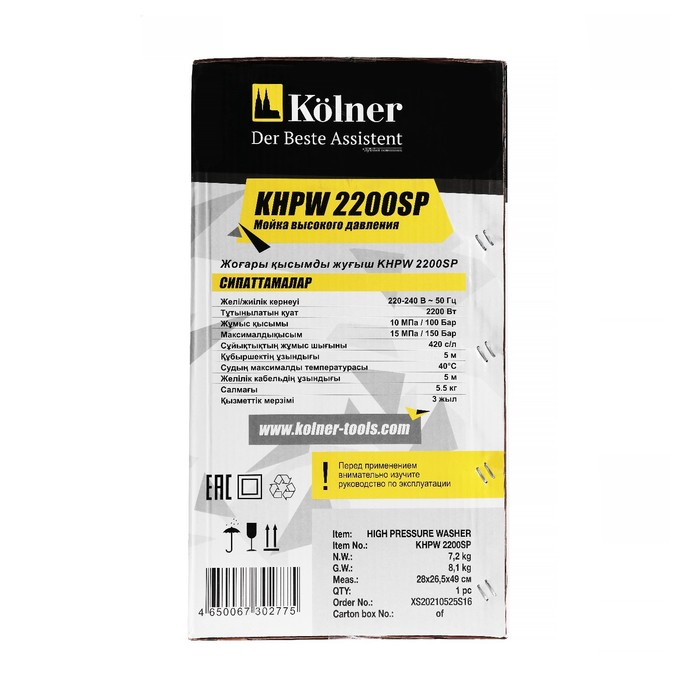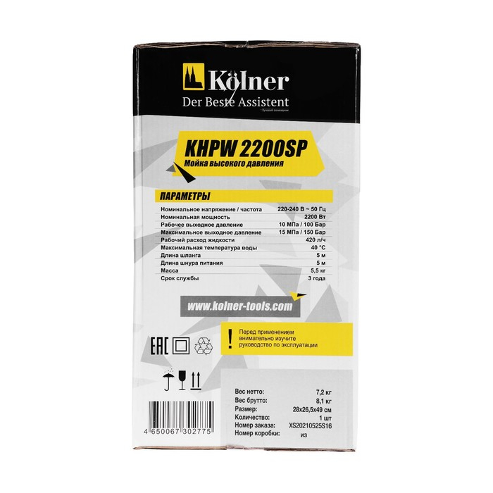 Мойка высокого давления Kolner KHPW2200SP 2200 Вт, рабочее/максимальное давление 100/150 бар