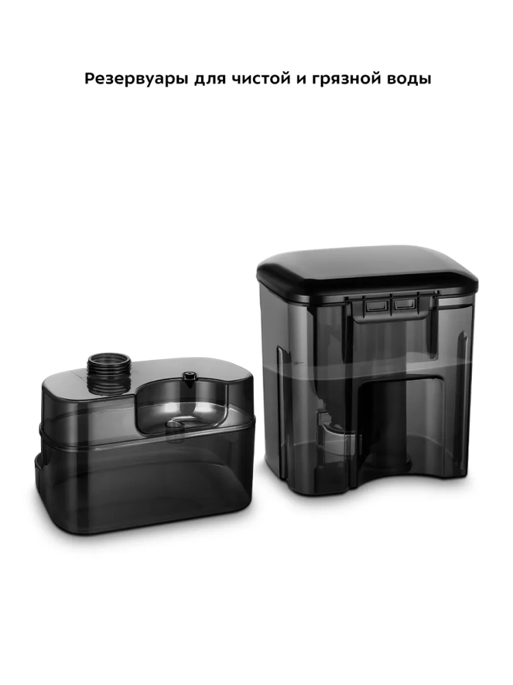 Насадки и резервуары выполнены из прозрачного пластика, поэтому в процессе уборки хорошо видно, как много грязи собирает моющий пылесос и видно, когда необходимо вылить воду из резервуара.