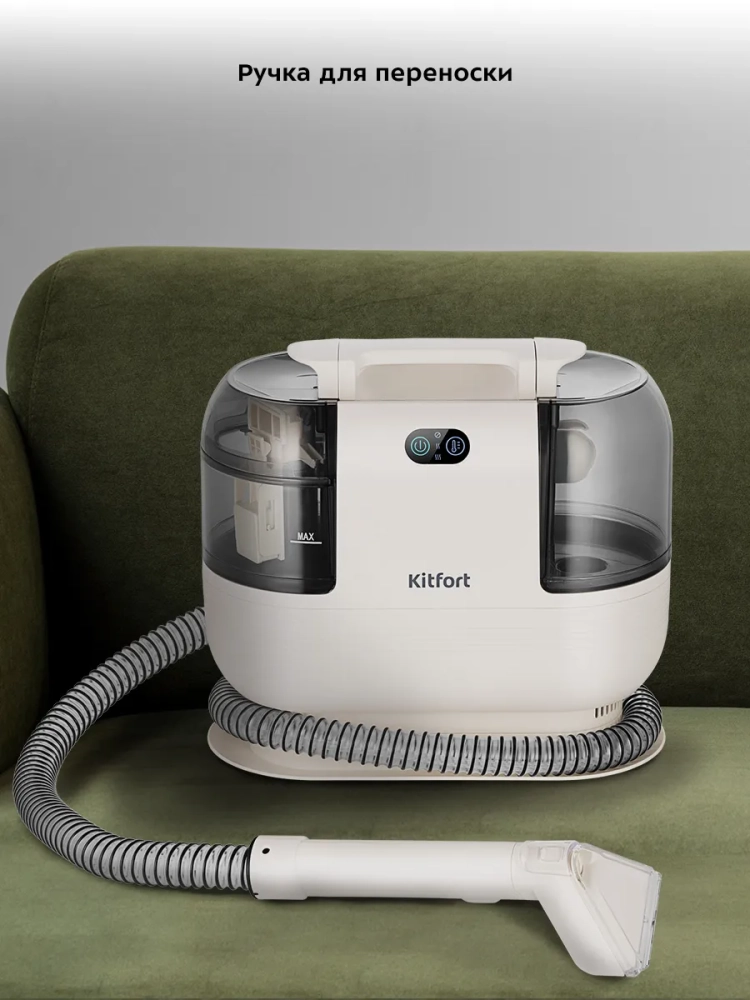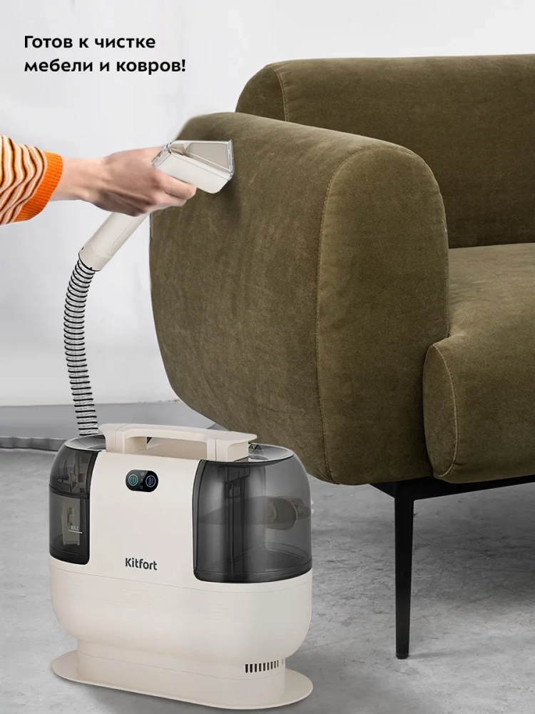 Моющий пылесос для ковров и мягкой мебели Kitfort KT-5325 поможет очистить обивку дивана, кресел, сидений в машине и другой мягкой мебели, а также ковры и ковровые покрытия. Пылесос автоматически подает чистую воду на очищаемую поверхность, а затем всасывает воду обратно с пылью и другими загрязнениями. Пыль и грязь оседают в воде, в резервуаре для грязной воды. В резервуар для чистой воды добавляют воду. В резервуаре для грязной воды предусмотрена защитная вставка с поплавком, которая по мере наполнения резервуара поднимается. Когда резервуар для грязной воды будет наполнен выше максимально допустимого уровня, защитная вставка перекроет всасывающее отверстие и защитит двигатель от попадания влаги. В таком случае вы почувствуете, что пылесос перестал всасывать жидкость. Отключите пылесос и вылейте грязную воду из резервуара.