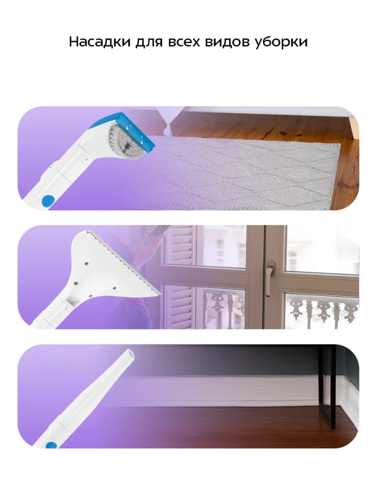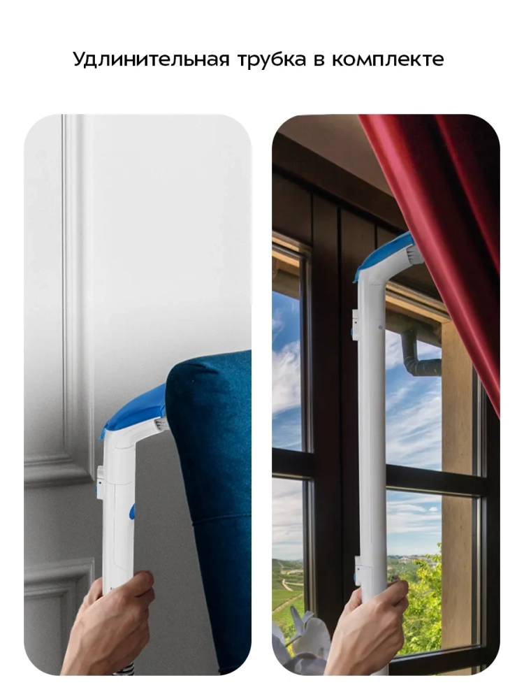 Чистить моющий пылесос очень легко, так как насадки и резервуары снимаются и промываются проточной водой. У моющего пылесоса есть держатель рукоятки, поэтому его можно компактно сложить и удобно хранить.