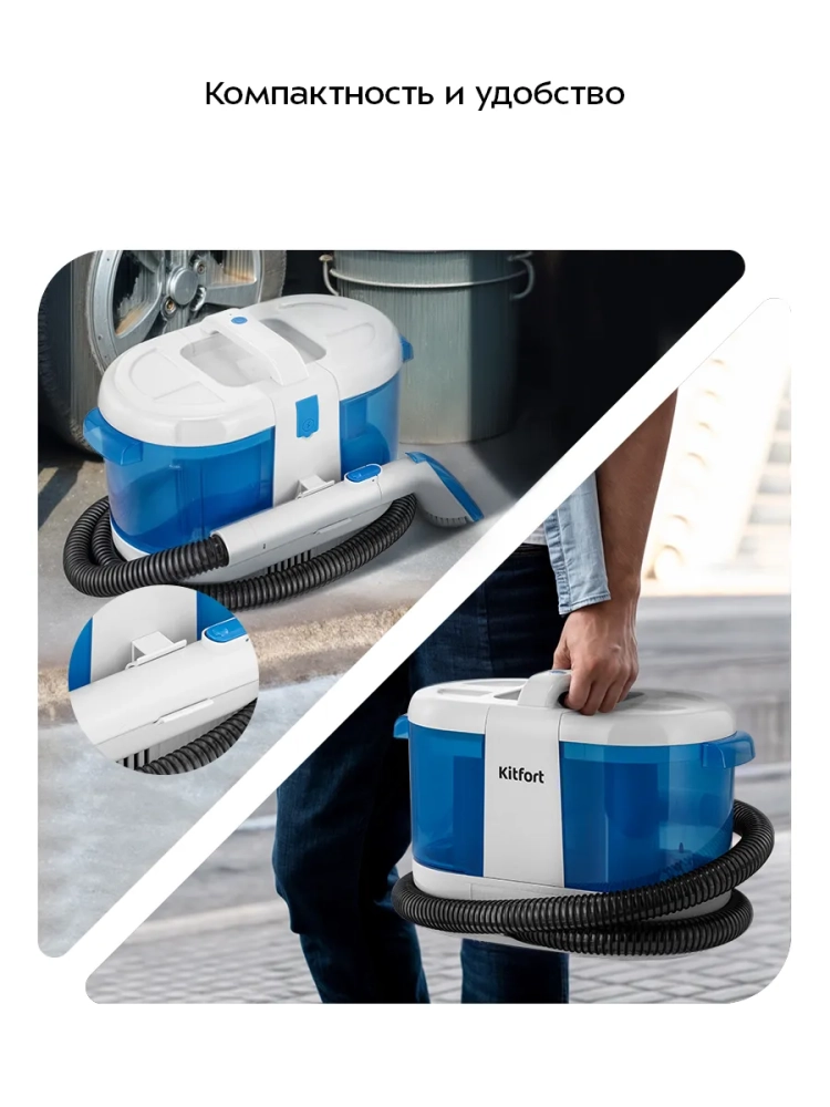 Благодаря небольшим размерам и весу моющего пылесоса его легко перемещать за ручку ближе к зоне уборки. Пылесос питается от аккумулятора, поэтому его можно использовать вдали от розеток. Вы можете почистить салон машины или легко перемещать пылесос по квартире, не ограничиваясь длиной шнура.