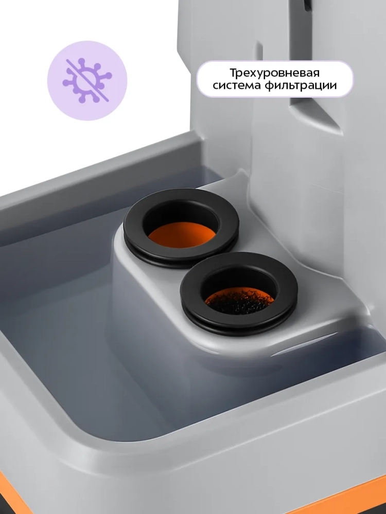 Моющий пылесос для дома КТ-5530 - 330 Вт — это идеальное решение для поддержания чистоты в вашем доме и автомобиле. Этот мощный пылесос эффективно справляется с очисткой обивки диванов, кресел, автомобильных сидений и другой мягкой мебели. Он также отлично подходит для ковров и ковровых покрытий, обеспечивая глубокую чистку благодаря своей трехуровневой системе фильтрации. Пыль и грязь оседают в воде внутри контейнера для грязной воды техники, что предотвращает их повторное попадание в воздух. Контейнер оснащен поплавком, который поднимается по мере наполнения резервуара. Когда уровень воды достигает максимума, всасывающее отверстие автоматически перекрывается, защищая двигатель от влаги. Резервуар для чистой воды имеет емкость 0,8 литра и позволяет добавлять только воду. Моющий пылесос проводной оснащен фильтром на выходе из контейнера для грязной воды — он защищает двигатель от мусора и загрязнений. Два дополнительных фильтра на воздухоотводящих отверстиях предотвращают выбросы мелких частиц обратно в воздух. Этот автомобильный пылесос прост в уходе и использовании в машине и на полу: все насадки легко снимаются и промываются водой. Компактные размеры устройства (260 х 220 x 270 мм) позволяют удобно хранить его даже в небольших помещениях или салоне авто. С длиной шланга 1 м и шнура 2,9 м вы сможете добраться до самых труднодоступных мест как дома, так и внутри автомобиля. Пылесос предназначен исключительно для влажной уборки; он не подходит для сухого очищения поверхностей.