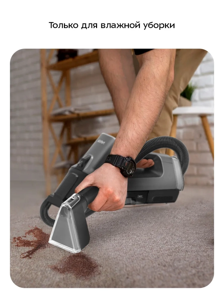 Моющий пылесос предназначен только для влажной уборки, он не подходит для того, чтобы просто пропылесосить диван или ковер.