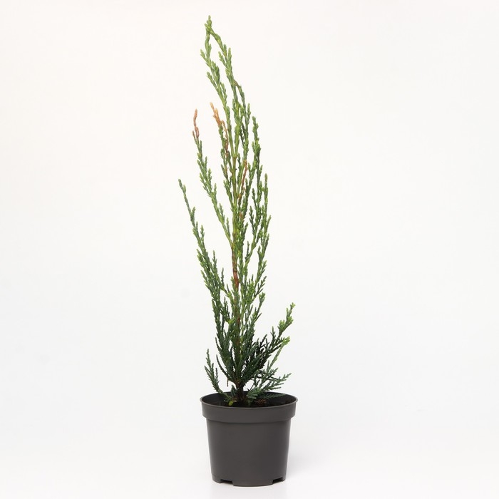 Растение отличается быстрым темпом роста, около 15-25 см в год, и значительной высотой, до 10-12 м. В начале крона узко-коническая, впоследствии расширяется. Максимальная ширина ажурной, густой кроны 0,5-1 м. Рост прямых ветвей направлен вверх. Внутри кроны хвоя короткая, игольчатая, острая. По наружной стороне – чешуйчатая, мягкая. Цвет насыщенно-зеленый или изумрудно-зеленый. Округло-овальные, крохотные, черно-синие плоды, около 5-10 мм в диаметре, покрыты характерным восковым налетом.