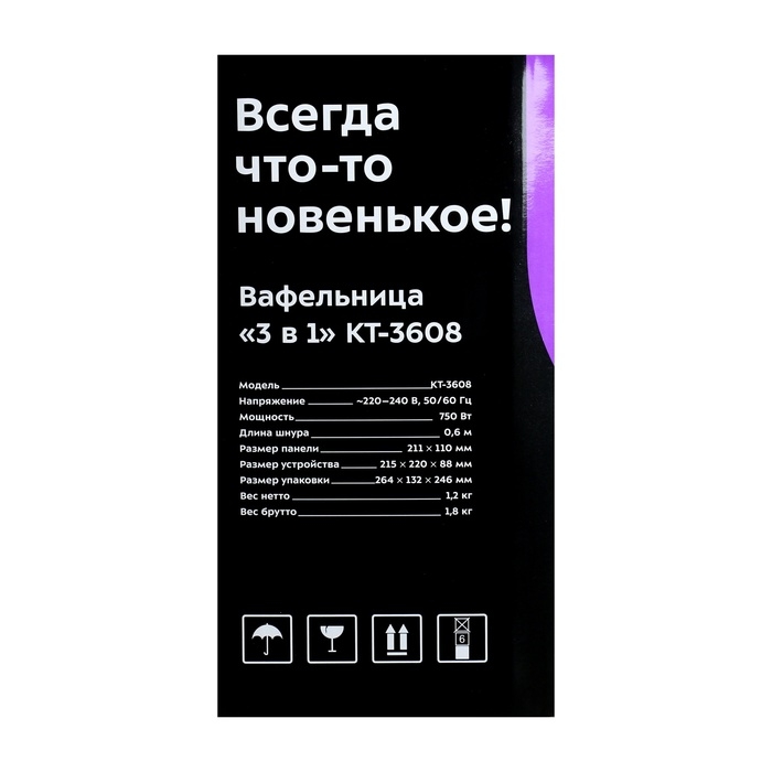 Мультипекарь Kitfort КТ-3608, 750 Вт, венские вафли/гриль/сэндвичи, чёрно-серый