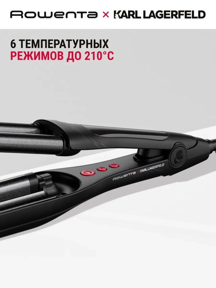 Стайлер Rowenta x Karl Lagerfeld Waves Addict CF471LF0 поможет создать строгие, яркие и запоминающиеся образы всего в несколько простых движений.