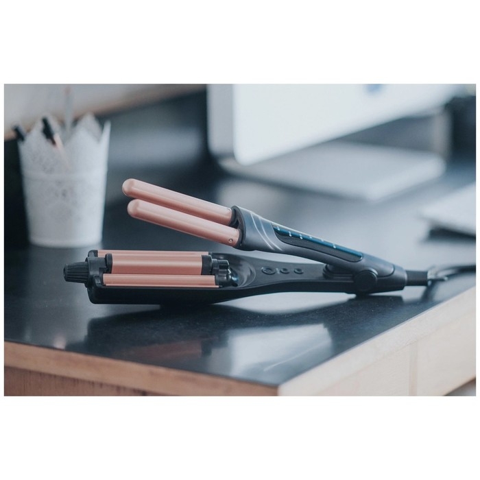 Инновационный и универсальный стайлер от Rowenta подходит для любых типов волос и создает идеальную укладку с эффектом естественных волн. Выбирайте между ежедневной укладкой для работы, летним пляжным стилем, голливудской прической для красной ковровой дорожки или популярным волнистым бобом. В комплекте с Waves Addict идет руководство по использованию, которое поможет создать вашу любимую укладку. Стайлер одинаково эффективно работает как с тонкими, так и с толстыми волосами. Благодаря петле для подвешивания и шнуру длиной 1.8 м стайлер легко хранить и удобно использовать.