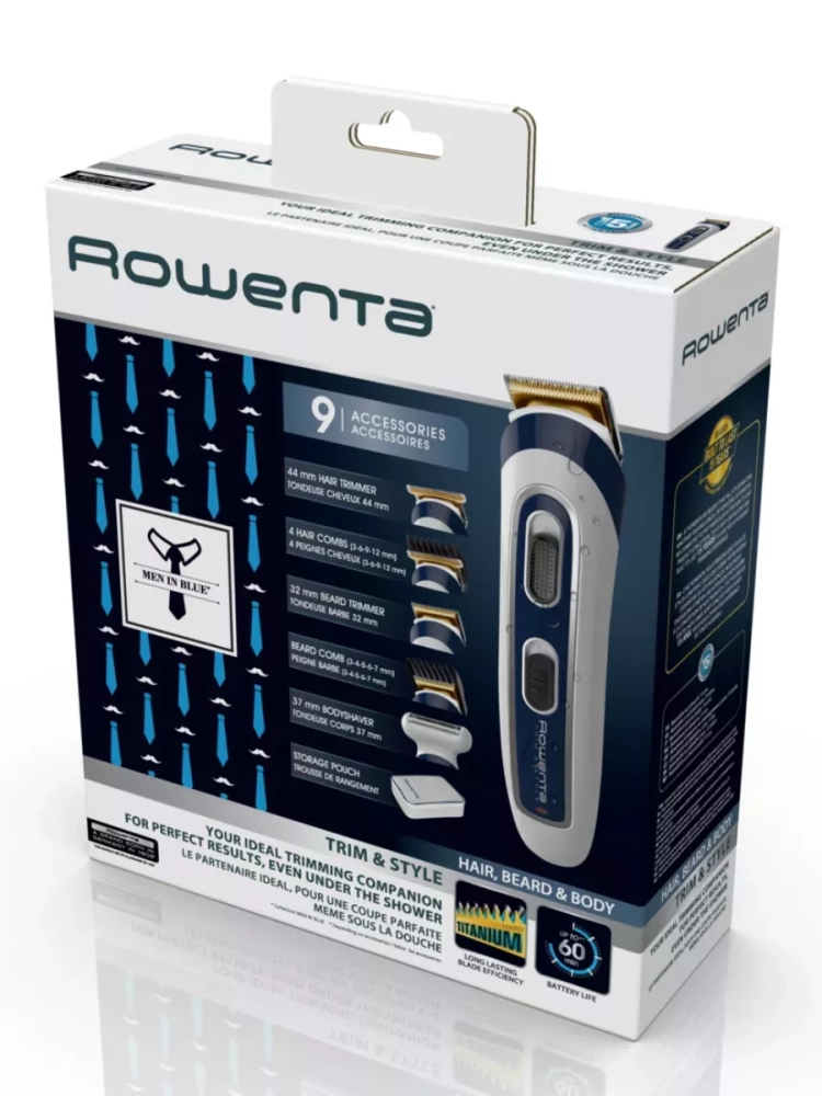 Мультитриммер Rowenta TRIM & STYLE 9в1 TN9155F1 – это универсальный прибор для ухода за волосами на голове и теле. Благодаря высокоскоростному долговечному мотору и подвижным лезвиям с титановым покрытием устройство эффективно срезает волосы за один проход. Пять уровней длины помогают создать ваш собственный стиль и поддерживать его, не выходя из дома. Технология Wet & Dry позволяет удобно использовать машинку в душе и мыть лезвия после каждого использования.