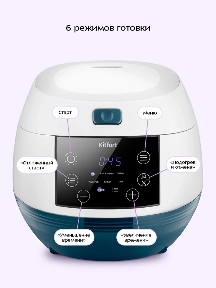 Мультиварка Kitfort КТ-220 поможет приготовить мясные, овощные, рыбные блюда, блюда на пару, а также сделать плов, сварить мягкий или твердый рис, приготовить традиционную кашу или потушить овощи, испечь пирог.