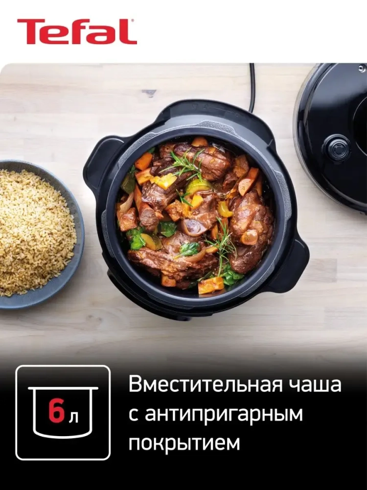 Благодаря технологии приготовления под давлением, скороварка Тефаль ускоряет процесс готовки в несколько раз по сравнению с традиционными методами. Герметично закрывающаяся крышка и специальный клапан для выпуска пара обеспечивают безопасность и удобство использования бытовой техники. В режиме скороварки можно приготовить блюда до трех раз быстрее, а медленноварка позволит томить ингредиенты, раскрывая их вкус и аромат.