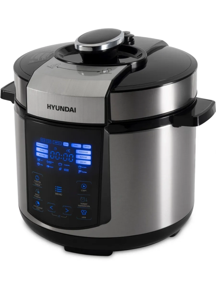 Мультиварка-скороварка Hyundai HYMC-1618 серебристый/черный, мощность 1000Вт, объем чаши 5л, покрытие чаши двойное