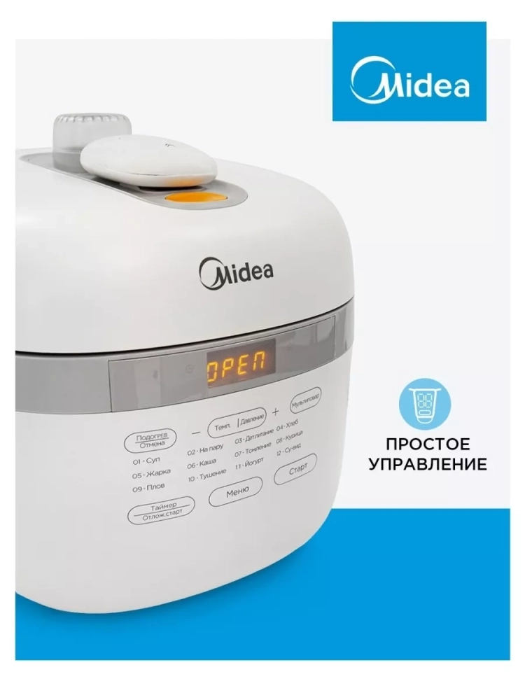 Мультиварка-скороварка Midea MPC-6004 - это современное устройство, которое сочетает в себе функции мультиварки и скороварки.