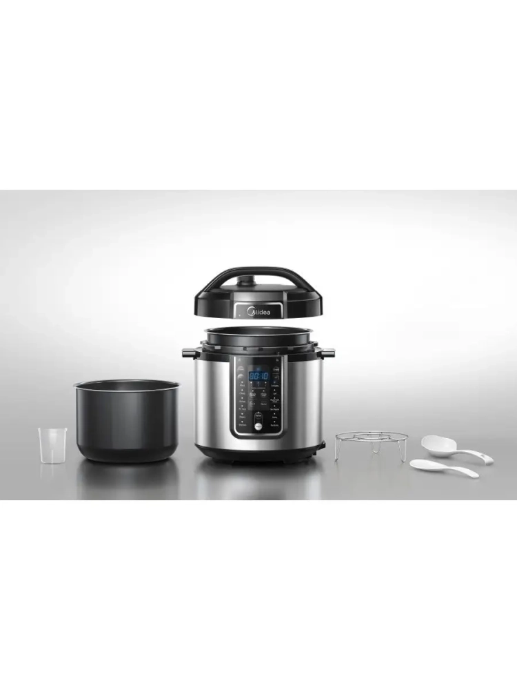 Мультиварка-скороварка Midea MPC-6037 обещает провести время на кухне с удовольствием с помощью 14 оптимальных программ, разработанных и протестированных инженерами. Часть из них готовят при нормальном давлении в режиме мультиварки, а другая - под высоким давлением (до 70кПа). На программах с давлением рис/гречка сварится за 10-15 мин, а холодец всего за 2,5 часа.Режим Мультиповар позволяет самостоятельно устанавливать время приготовления (от 1 мин до 12 ч) и температуру (от 30 до 160 С).Midea MPC-6037 имеет удобное управление, яркую подсветку, 9 ступеней защиты. Книга рецептов на 78 разнообразных блюд. Модель имеет 5,7 литровую чашу с лицензионным японским антипригарным покрытием DAIKIN. Рекомендуется использовать до 2/3 объема чаши.Съемная крышка - это удобство при готовке, чистке и хранении. Чашу и все аксессуары можно мыть в посудомоечной машине.