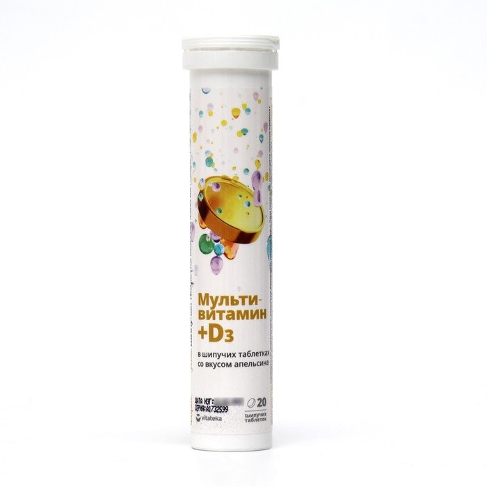 Мультивитамин +D3 Витатека со вкусом апельсина, 20 шипучих таблеток