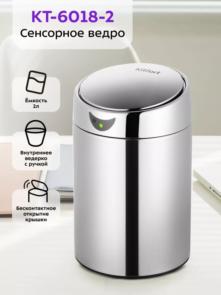 Сенсорное мусорное ведро Kitfort КТ-6018 — это компактная настольная корзина для мусора с функцией бесконтактного открытия крышки. Его удобно поставить на рабочее место, компьютерный или письменный стол и выбрасывать мелкий мусор, который может появляться во время работы.