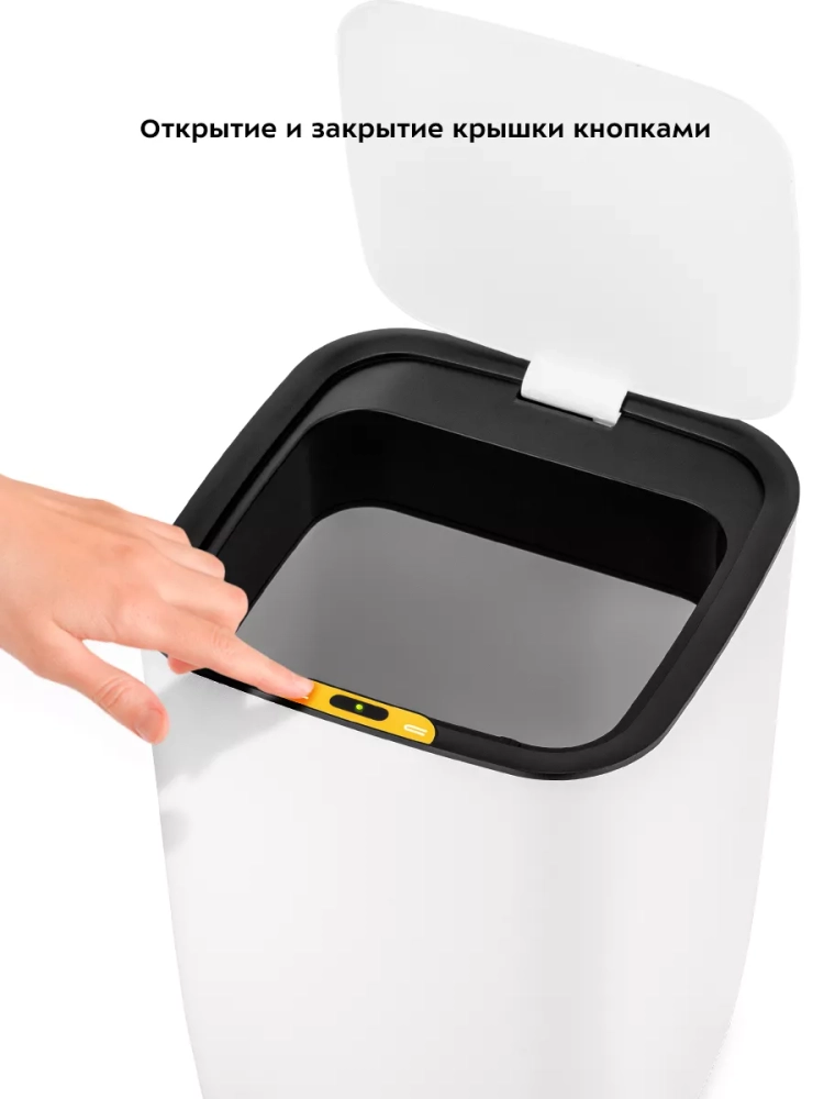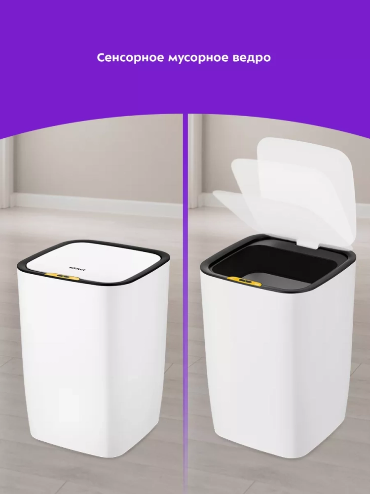 Сенсорное мусорное ведро оснащено инфракрасными датчиками. Такое ведро открывается и закрывается автоматически и его не нужно касаться при выбрасывании мусора. Датчики ведра КТ-6021 расположены на крышке сверху. Когда объект появляется в зоне действия датчиков — откидная крышка ведра автоматически открывается и закрывается через 5 секунд. Также эта модель оснащена сенсорными кнопками для открытия и закрытия крышки. Если откидная крышка была открыта нажатием на кнопку, она автоматически закроется через 1,5 минуты.