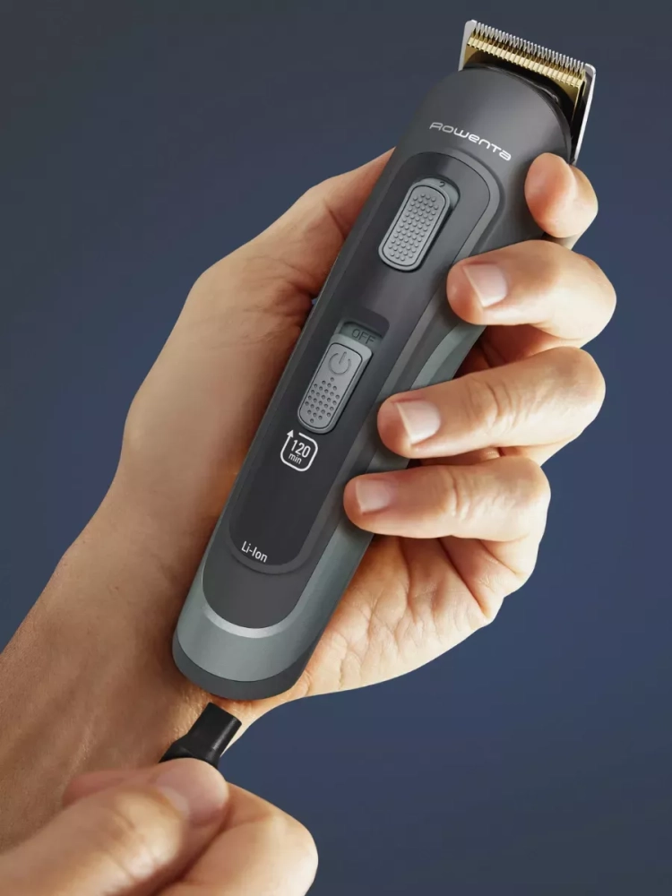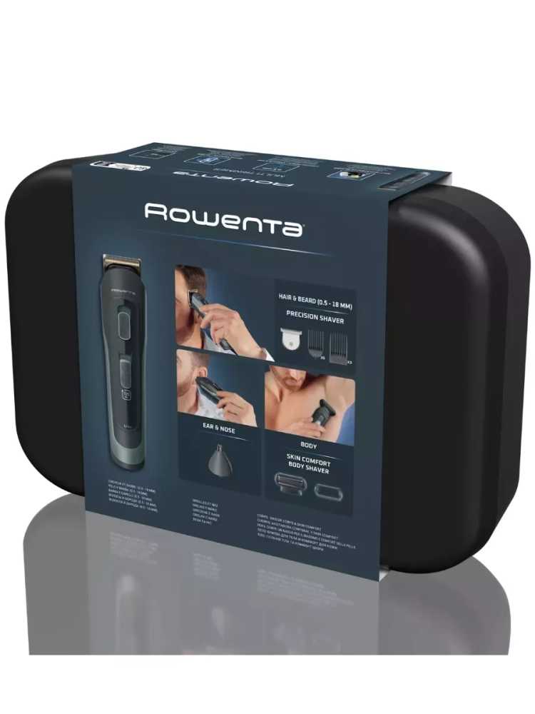 Мужской мультитриммер 15 в 1 Rowenta Selectium TN9444E0. Подстригайте волосы, бороду и избавляйтесь от нежелательной растительности на теле с помощью многофункционального и надежного мультитриммера Selectium 15 в 1. Его самозатачивающиеся лезвия из нержавеющей стали с титановым покрытием долго сохраняют остроту и с легкостью срезают даже грубые волосы в одно движение. Набор разных лезвий и гребней обеспечивает широкий диапазон длин среза с шагом 0,5 миллиметра, а набор дополнительных аксессуаров расширяет функциональность триммера.