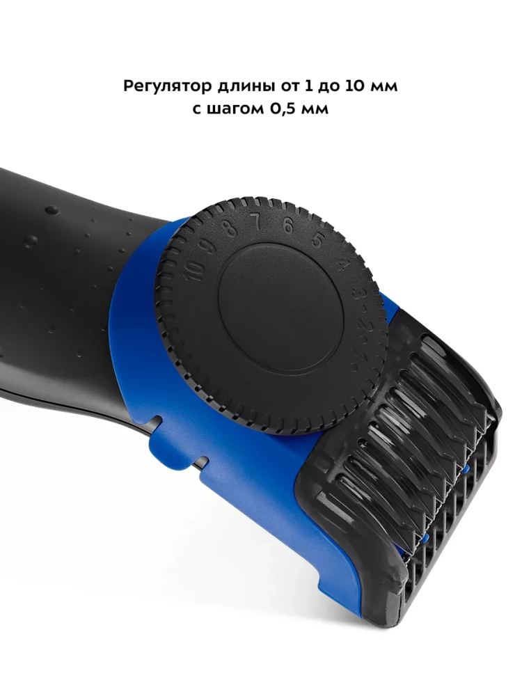 С помощью гребня и регулятора длины вы можете установить длину волос от 1 до 10 мм с точностью 0,5 мм.