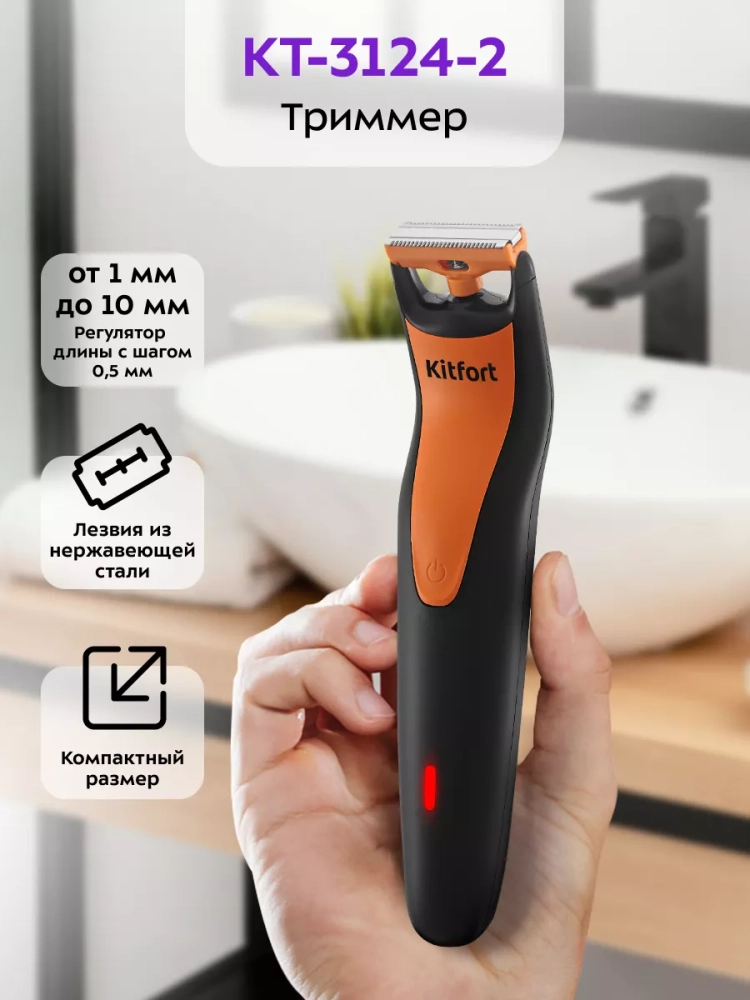 Триммер Kitfort KT-3124 — это прибор для бритья, стрижки и подравнивания бороды, усов или бакенбард. Лезвия из нержавеющей стали обеспечивают качественное и тщательное удаление волос. Корпус триммера ненамного больше обычного бритвенного станка, что позволяет брать его с собой в командировки, походы и путешествия.