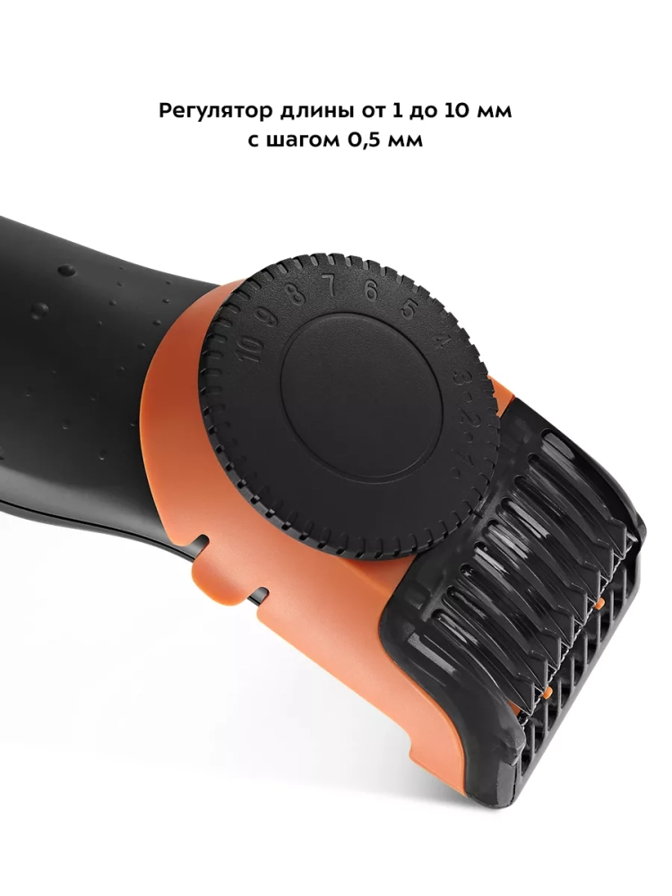 С помощью гребня и регулятора длины вы можете установить длину волос от 1 до 10 мм с точностью 0,5 мм.