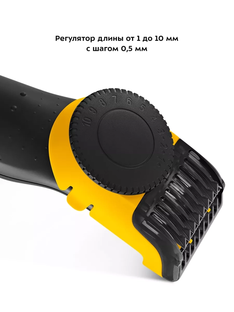 С помощью гребня и регулятора длины вы можете установить длину волос от 1 до 10 мм с точностью 0,5 мм.