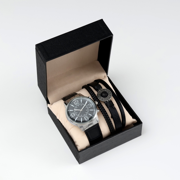 Мужской подарочный набор 2 в 1: наручные часы, браслет