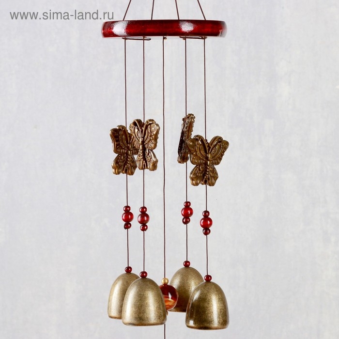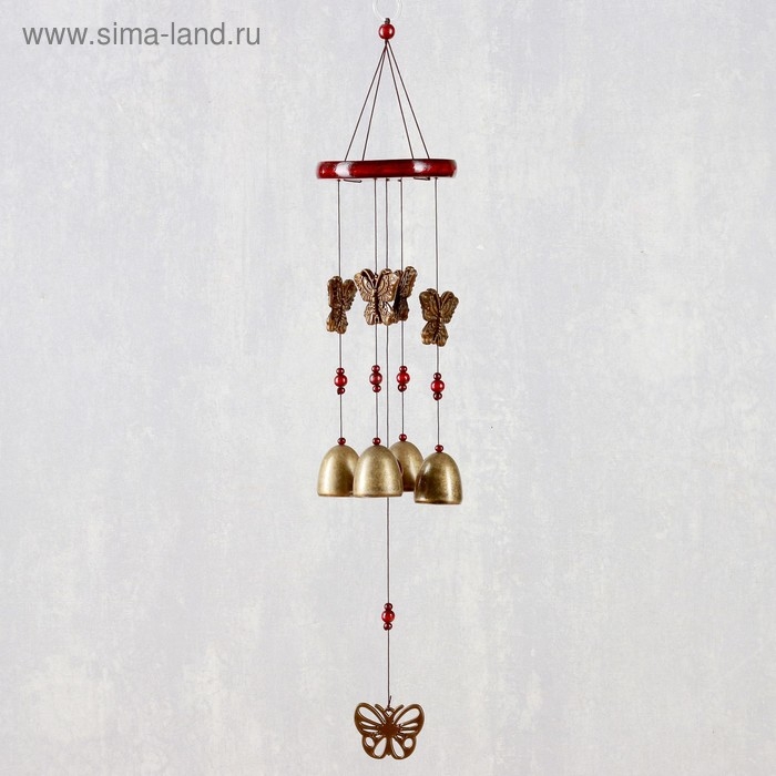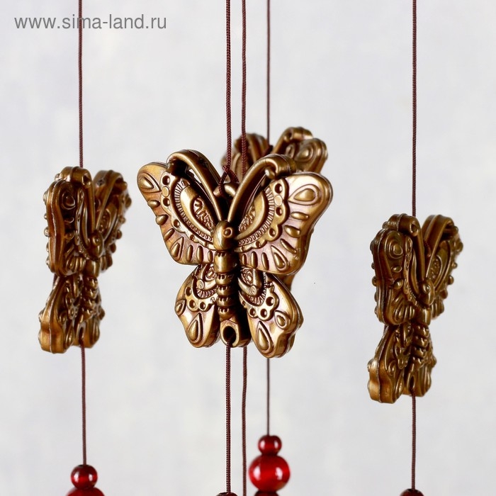 Музыка ветра металл, дерево "Бабочки" 4 колокольчика 55 см