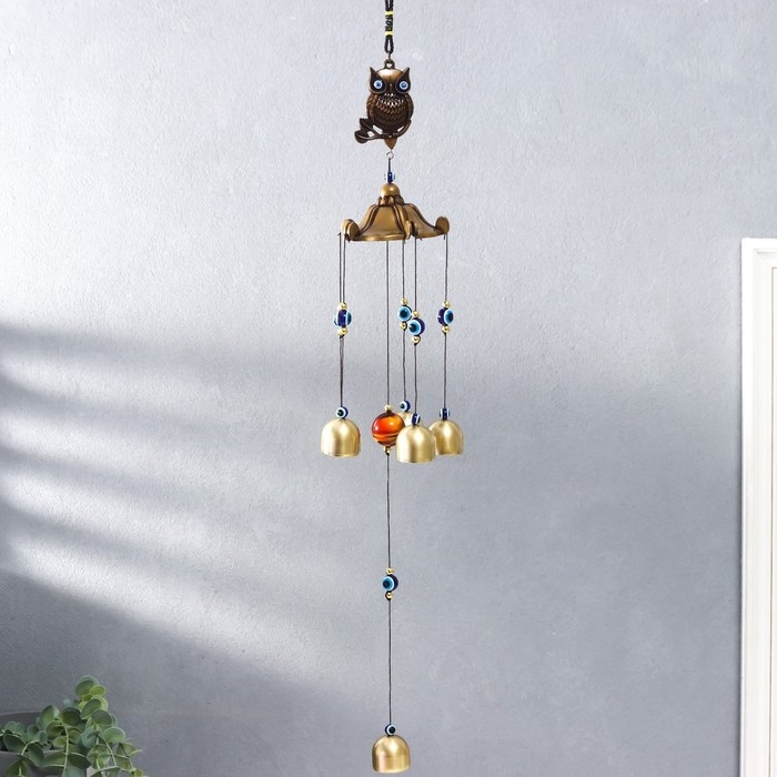 Музыка ветра металл "Филин на ветке" от сглаза 5 колокольчиков 44х8х8 см
