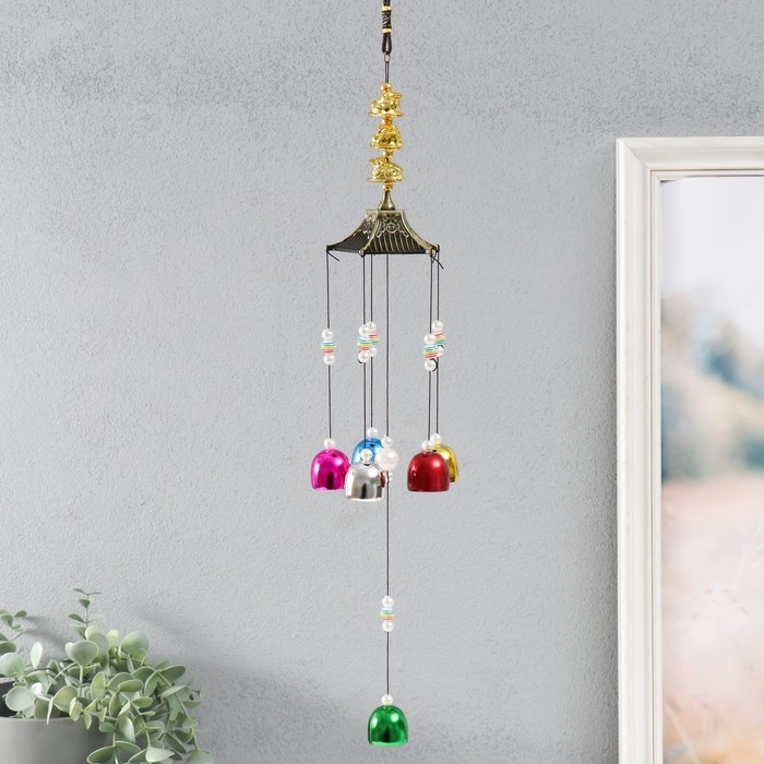 Музыка ветра металл "Три денежных жабы" 6 колокольчиков 55х8х8 см