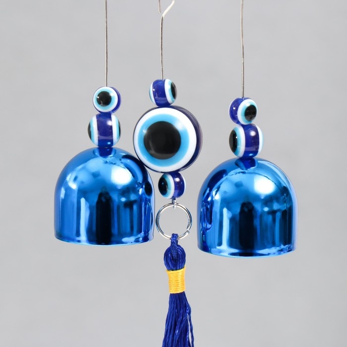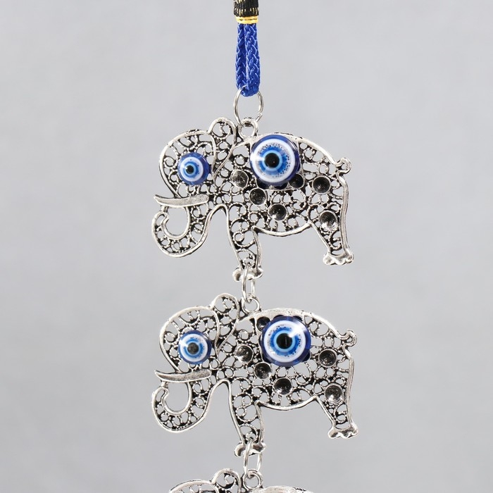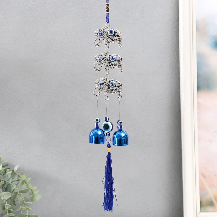 Музыка ветра металл "Три слоника" от сглаза с кисточкой 2 колокольчика 30 см