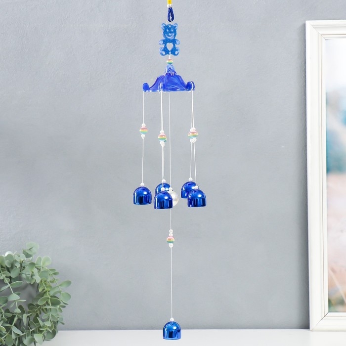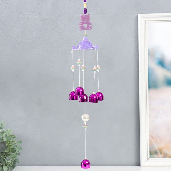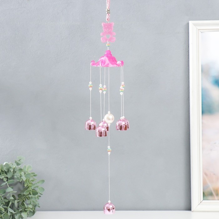 Музыка ветра пластик, металл "Мишка с сердечком" 6 колокольчиков МИКС 41 см
