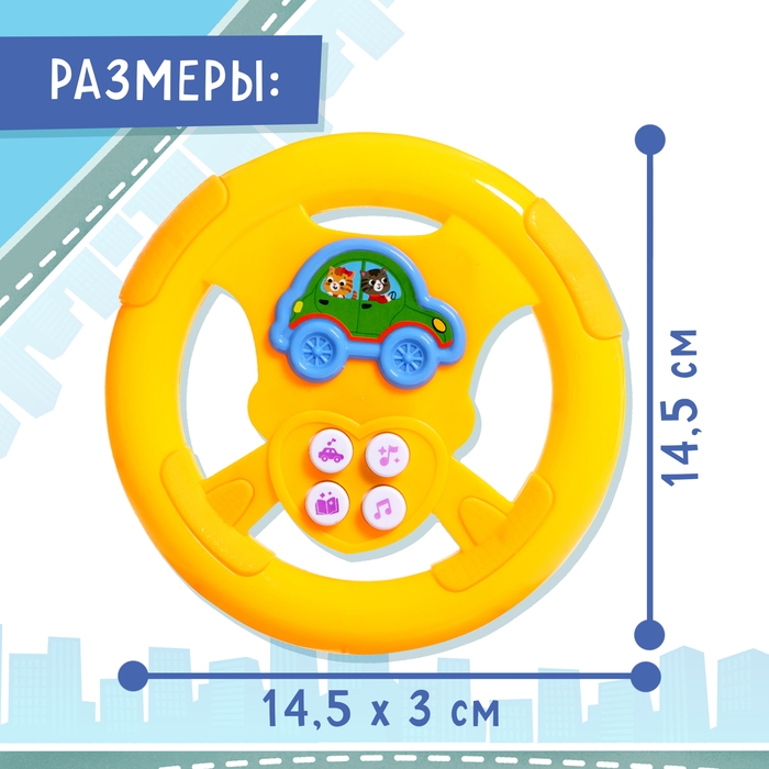 Игра с музыкальным рулём разовьёт воображение, мышление, мелкую моторику и слуховое восприятие.