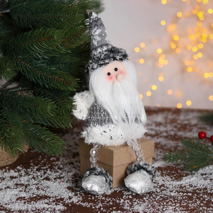 Мягкая игрушка "Дед Мороз - ножки из бусинок" 9*27 см серо-белый