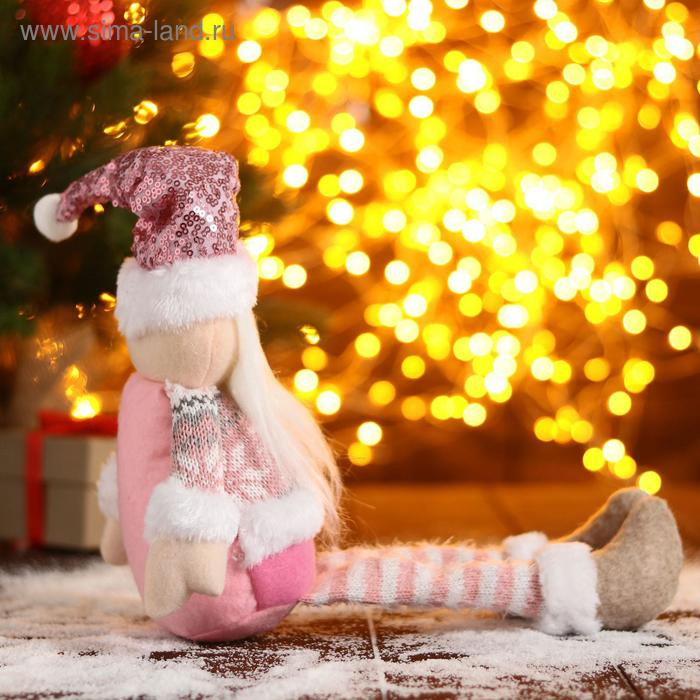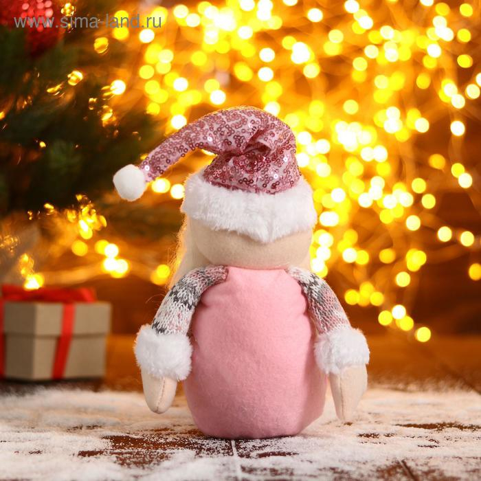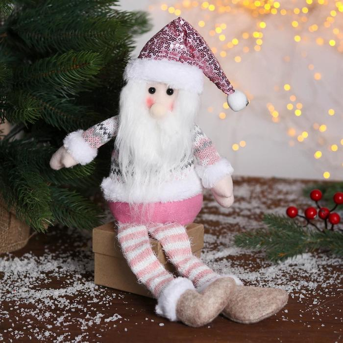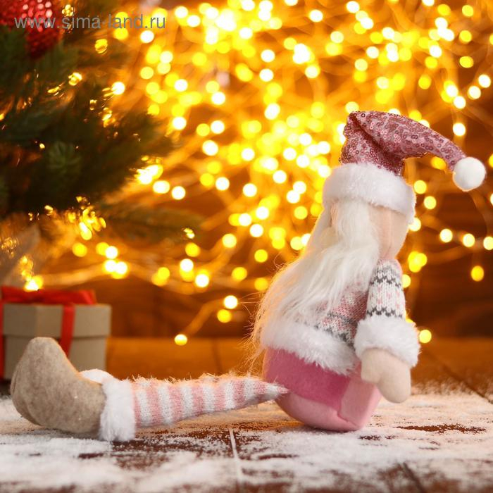 Мягкая игрушка "Дед Мороз в розой шапочке-длинные ножки" 11х37см, бело-розовый