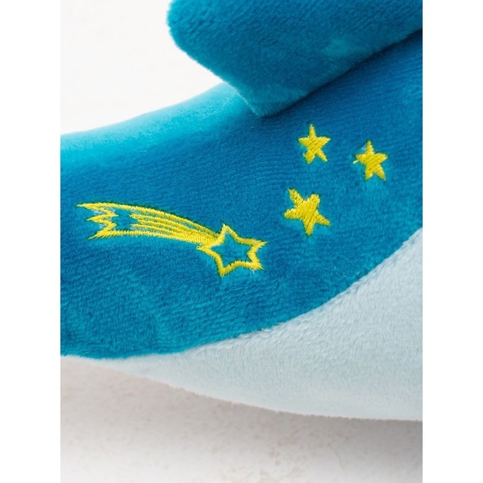 - Оттенки синего сочетаются с золотыми звездами на боку, а голубые глазки обрамляются вышитыми ресничками.
