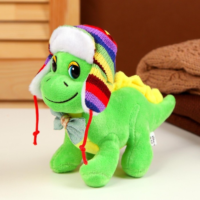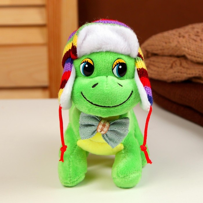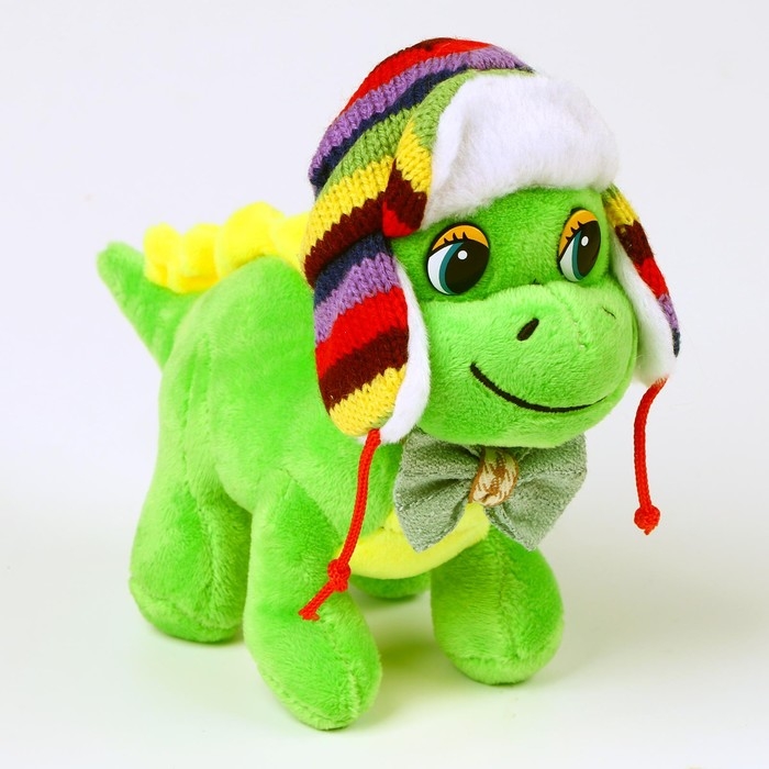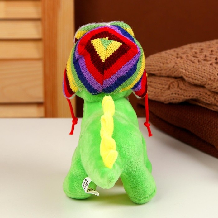 Мягкая игрушка «Дракон», в разноцветной шапке-ушанке, 16 см, цвет зелёный
